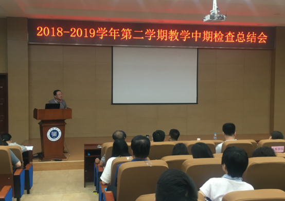 教务处牟信妮副处长从教学规范检查 、教研室活动 、毕业实践检查 、同行互评、学生/教师座谈会、教材专项检查、试卷检查、顶岗实习八个方面汇报了学校期中教学检查及学院自查工作情况。